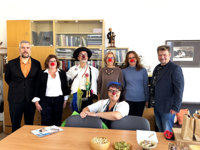 Stalo sa tradíciou, že na Svetový deň úsmevu (prvý piatok v októbri) prinášajú zdravotní klauni z Červeného nosa dobrú náladu a úsmev nielen do nemocníc a seniorských zariadení, ale aj do jednej vybranej inštitúcie. Po prezidentskej kancelárii v roku 2023 a Národnej transfúznej stanici v roku 2024 obdarovali tentokrát zdravotní klauni úsmevom zamestnancov a študentov Lekárskej fakulty Univerzity Komenského v Bratislave (LF UK).